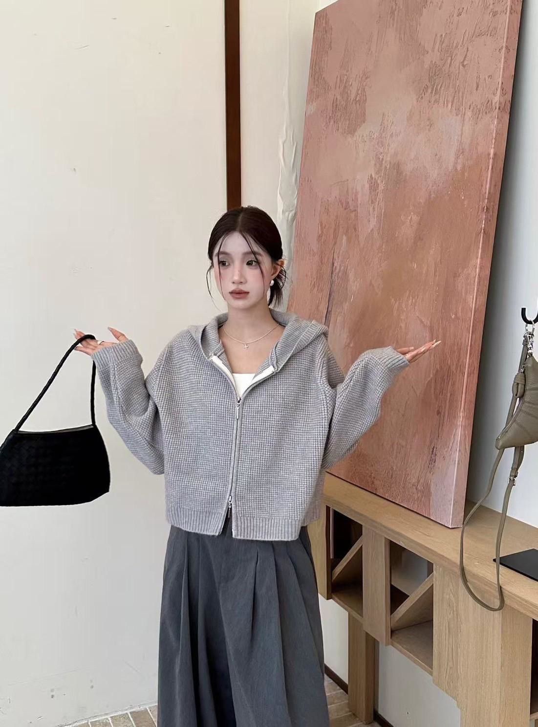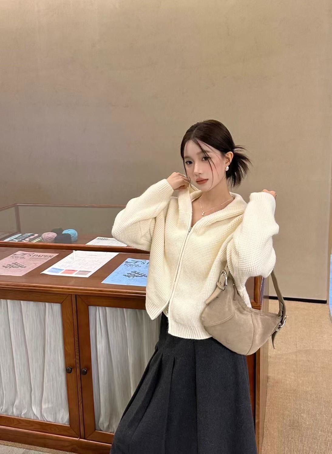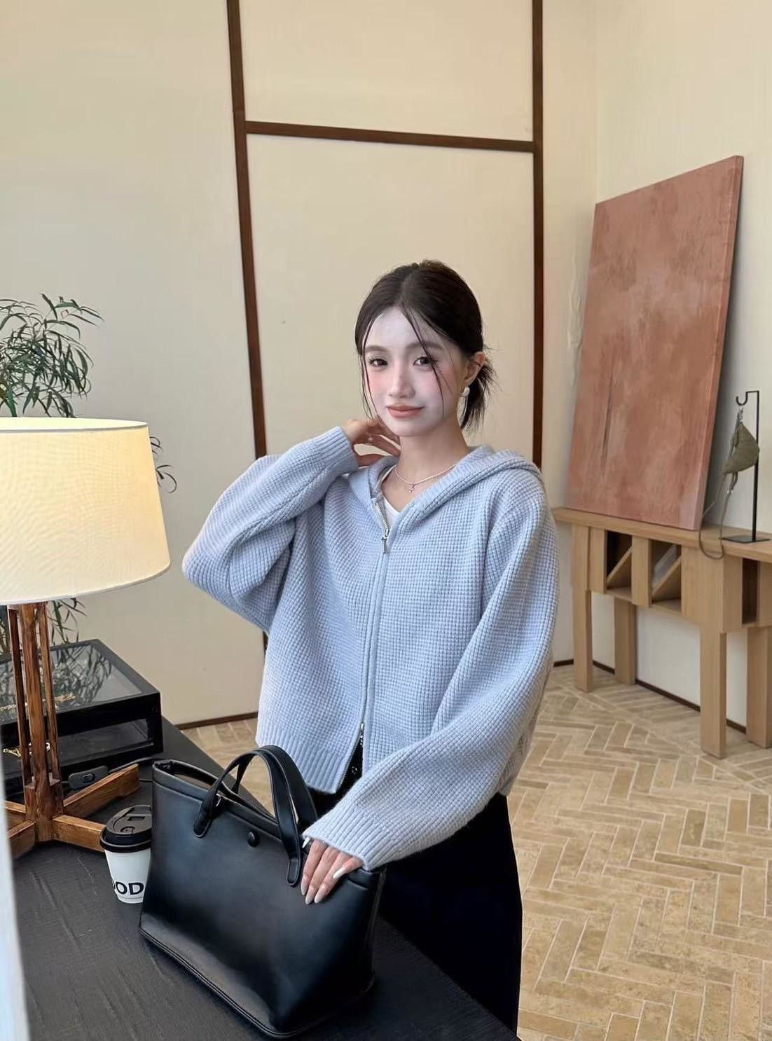 顆粒雙拉鍊毛衣外套,美人鞋窩