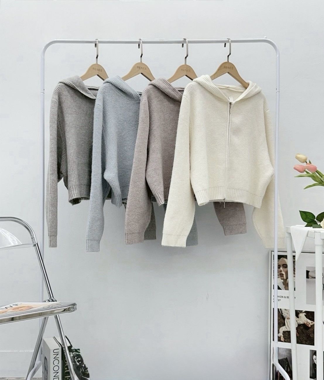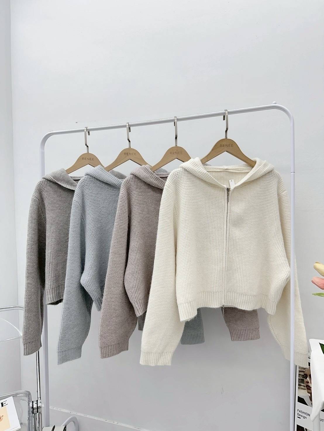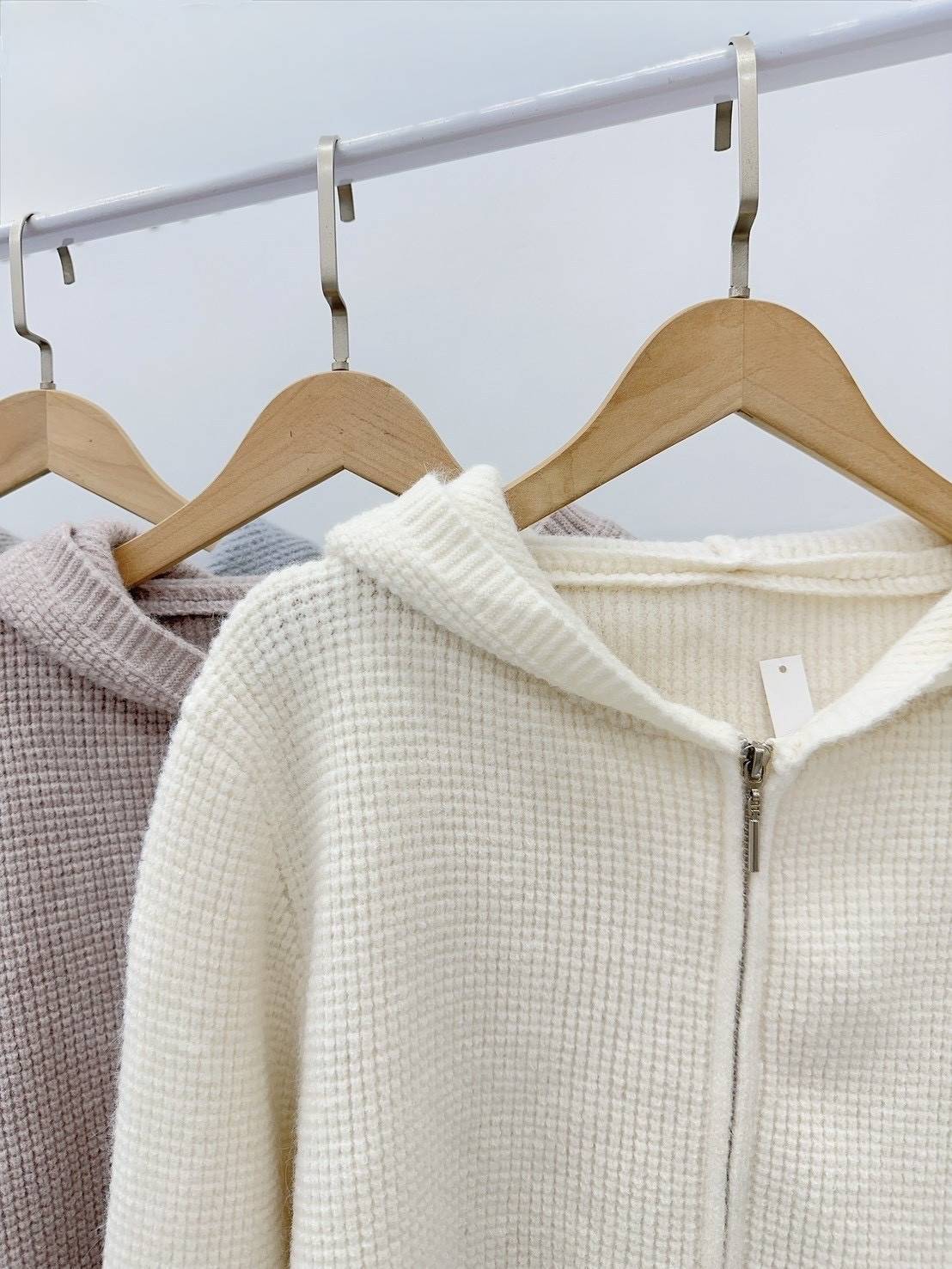 顆粒雙拉鍊毛衣外套,美人鞋窩