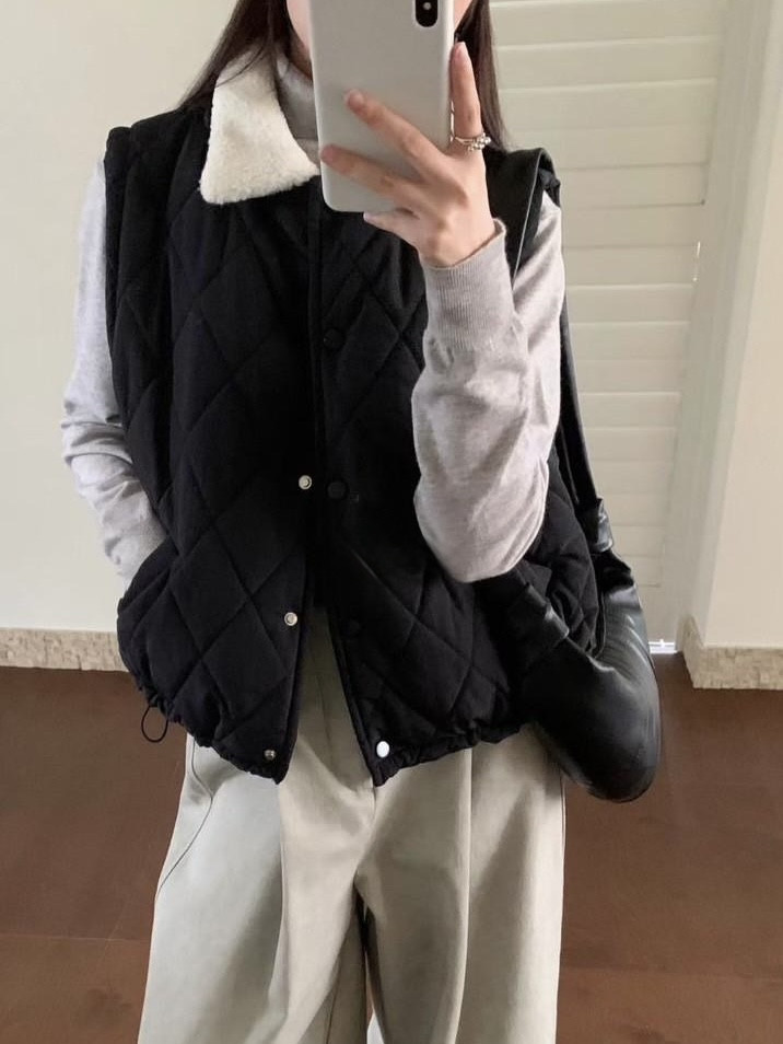 保暖毛領菱格鋪棉背心
