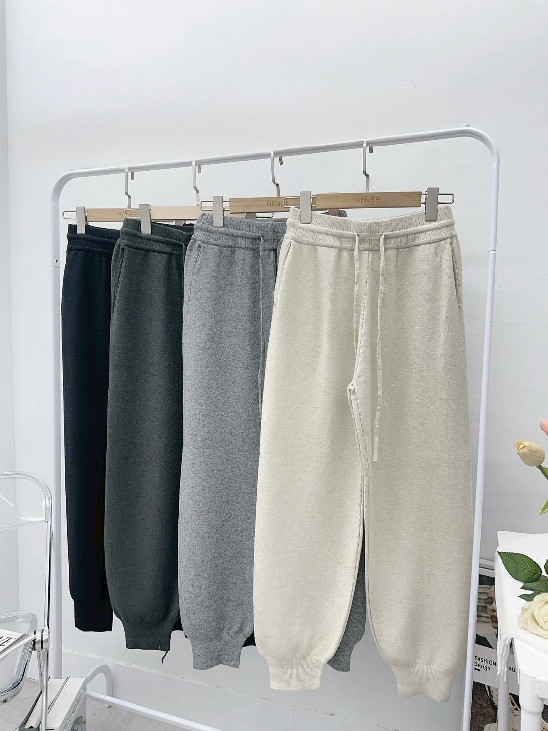 商品詳情 編號 : 624-6061 顏色 :黑/深灰/淺灰/燕麥 說明 :下縮口抽繩針織褲 尺寸 :腰33~55 臀50 長98 單位公分皆為平量 下縮口抽繩針織褲 TWD $680 TWD $485