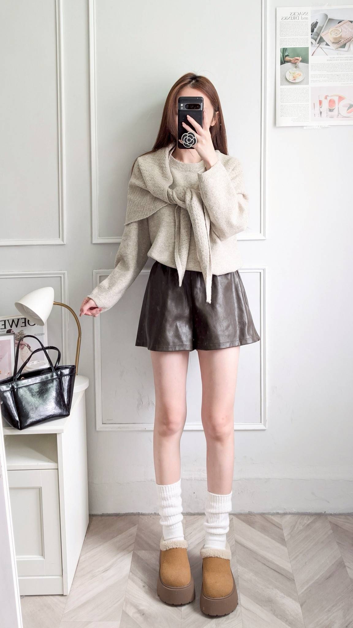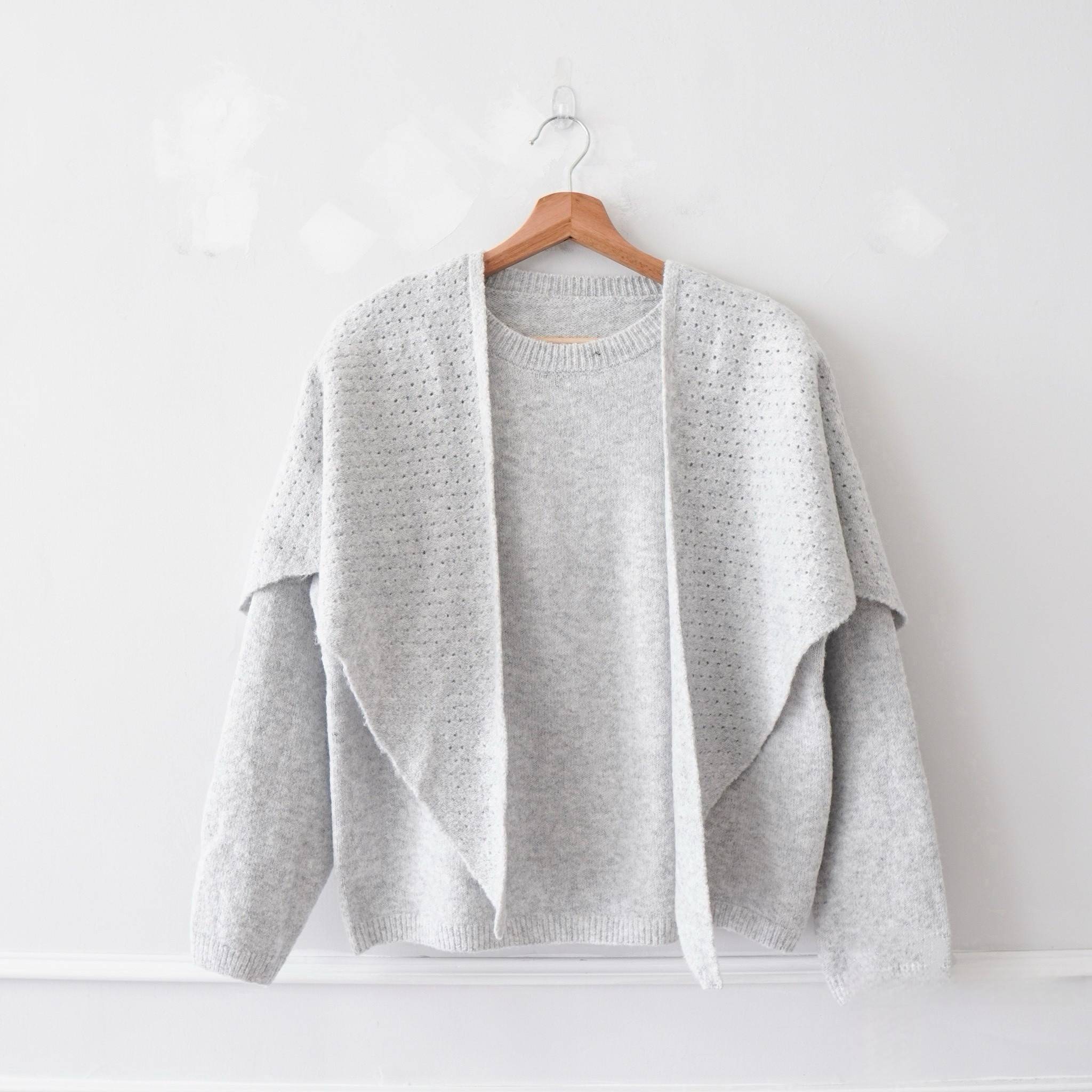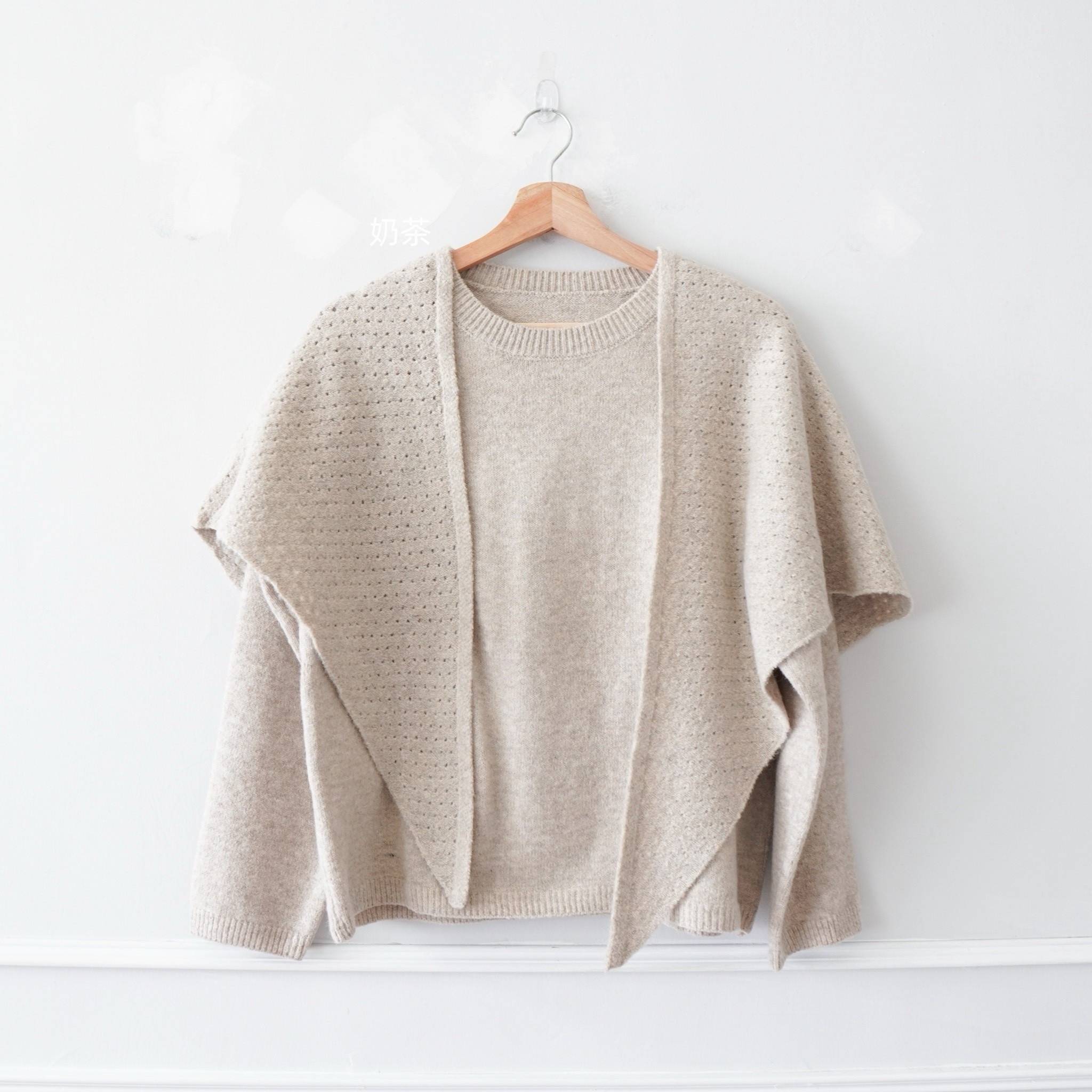商品詳情 軟糯毛線兩件式上衣 顏色:深灰、淺灰、杏 長59 胸61 輕鬆穿出層次感 柔軟親膚簡約針織上衣 版型微寬鬆、不挑身形; 外層披肩式罩衫採細緻鏤空織紋, 垂墜自然,輕輕一披就能立刻提升造型感。 兩件式上衣羊絨毛衣 TWD $1,060 TWD $689