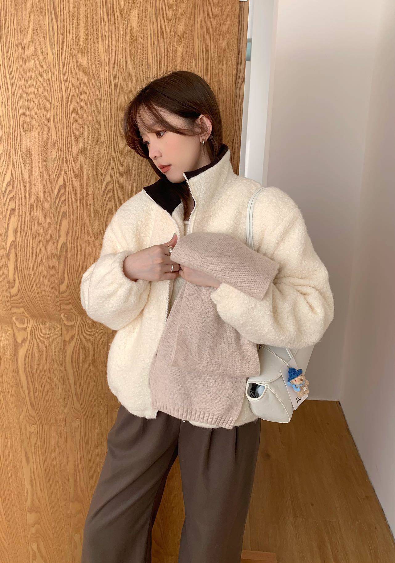 𝐍𝐞𝐰 𝟐𝟎𝟐𝟓 捲毛撞色領外套
