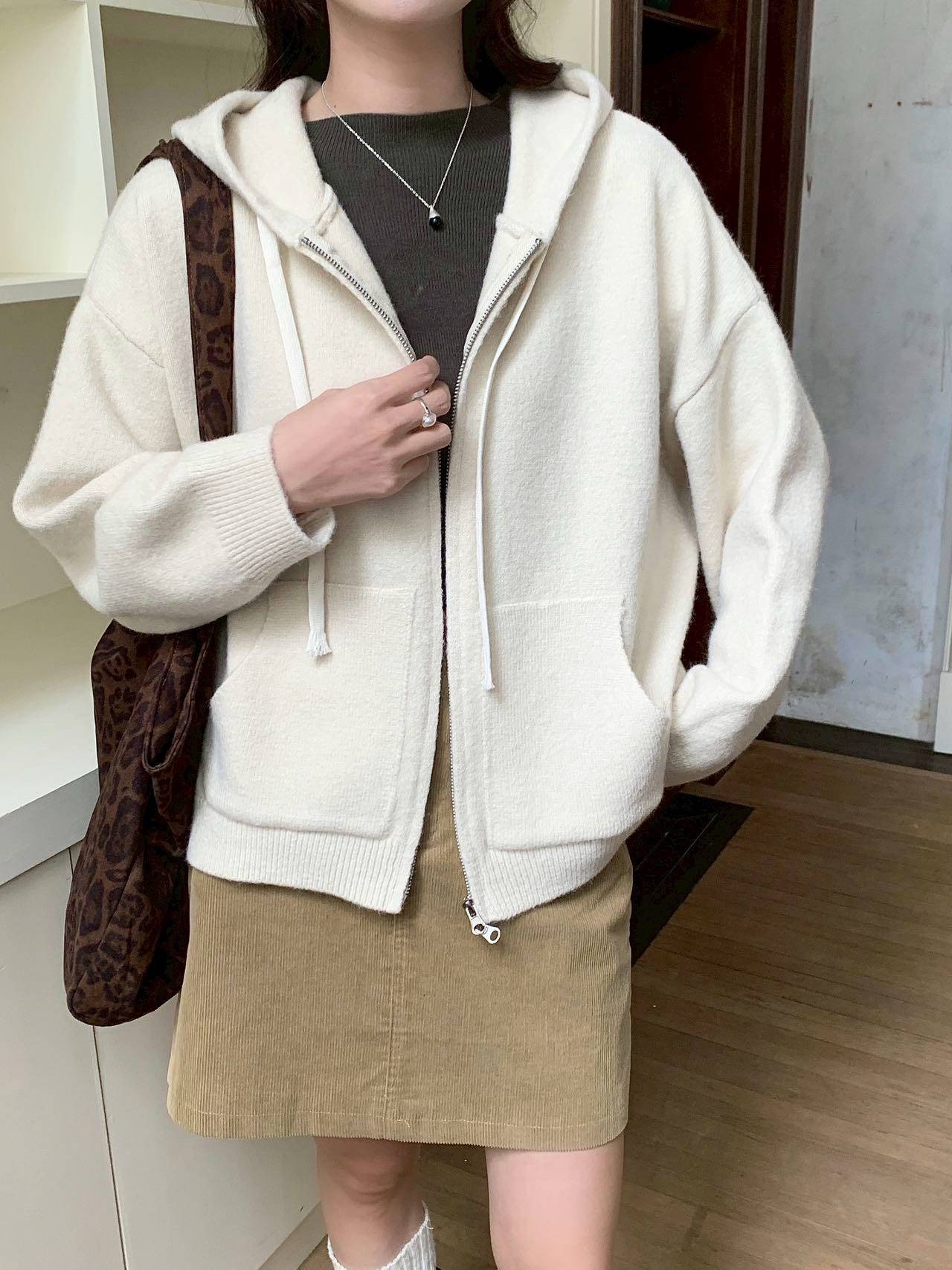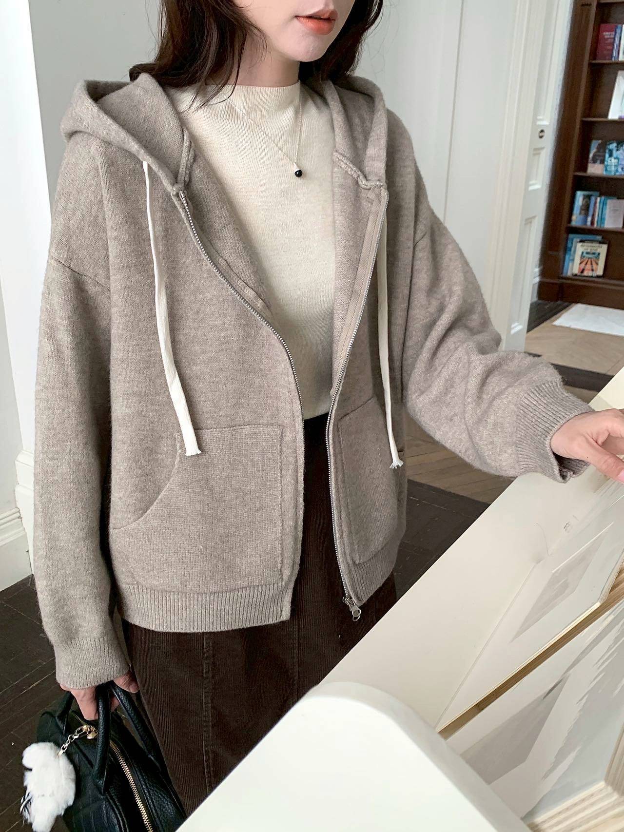 𝐍𝐞𝐰 𝟐𝟎𝟐𝟓 🍂拉鍊連帽抽繩針織外套