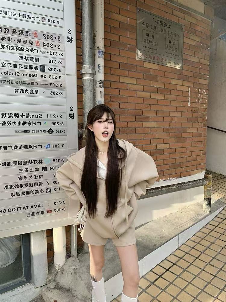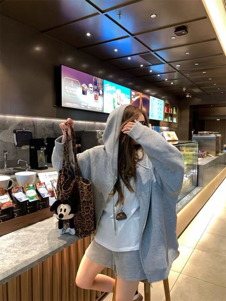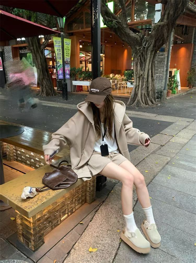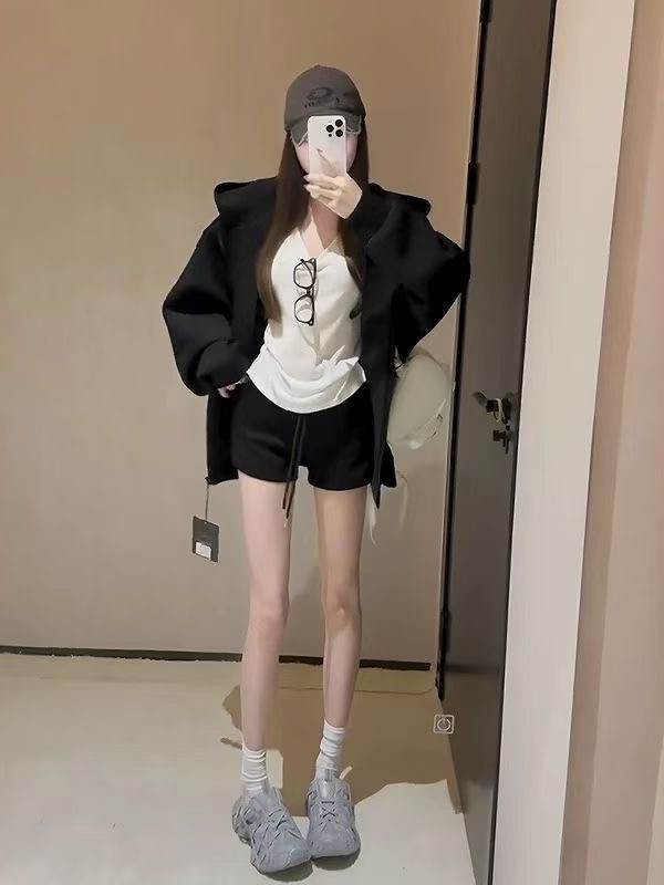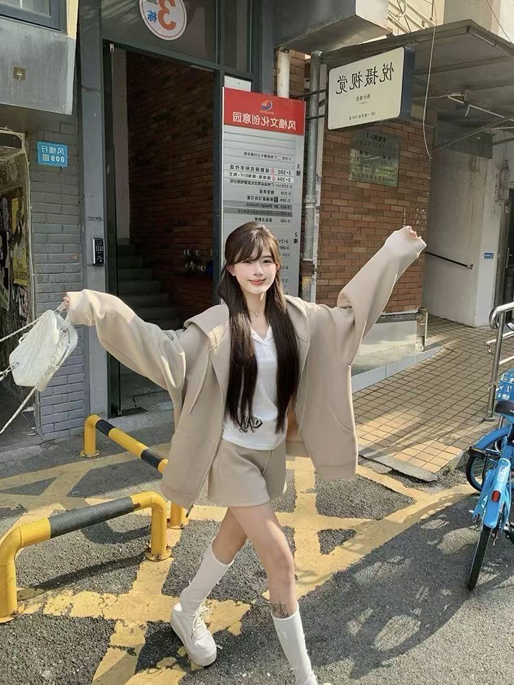 商品詳情 𝐍𝐞𝐰 𝟐𝟎𝟐𝟓 🍂衛衣連帽外套+短褲SET 顏色:卡.黑.灰 尺寸:外套 長度約70cm,胸圍約63cm 褲子 長度約34cm,腰圍約33cm 長度約57cm、胸圍約37cm 衛衣連帽外套+短褲SET TWD $1,250 TWD $900